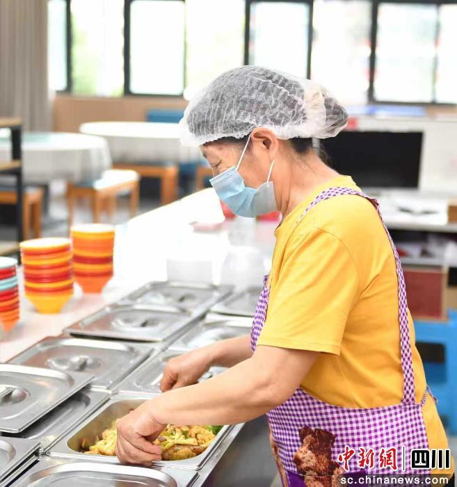 9月4日中午,在相如大道二段2號的建設南路社區(qū)綜合體看到,工作人員正在后廚緊張有序地忙碌著。不一會工夫,魚香肉絲、回鍋肉、麻婆豆腐、清炒冬瓜等一道道色香味俱全的菜肴新鮮出爐,陣陣香氣飄散開來,很快便吸引了第一波食客前來就餐。