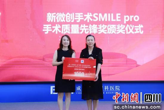 現(xiàn)場(chǎng),愛(ài)爾眼科四川省區(qū)副總院長(zhǎng)周進(jìn)教授向大眾開(kāi)展了眼健康知識(shí)普及,為近視患者解讀了這一前沿的近視矯正解決方案的技術(shù)優(yōu)勢(shì)。蔡司醫(yī)療眼科川藏業(yè)務(wù)負(fù)責(zé)人童小喬授予成都愛(ài)爾眼科醫(yī)院“新一代機(jī)器人全飛秒VISUMAX800新微創(chuàng)手術(shù)SMILE pro1000例手術(shù)質(zhì)量先鋒獎(jiǎng)”,肯定了愛(ài)爾眼科醫(yī)院在該領(lǐng)域的技術(shù)成就。