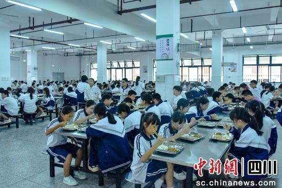 在洪雅縣田錫中學(xué)食堂,明亮整潔的環(huán)境與規(guī)范有序的流程格外顯眼。廚房內(nèi),防蠅防鼠設(shè)施齊全,功能區(qū)劃分清晰;餐廳里,學(xué)生有序排隊打餐,熱氣騰騰的飯菜香氣撲鼻!懊刻烊艘粶,老師和我們一起吃,很放心。”初一(12)班學(xué)生王杰說。