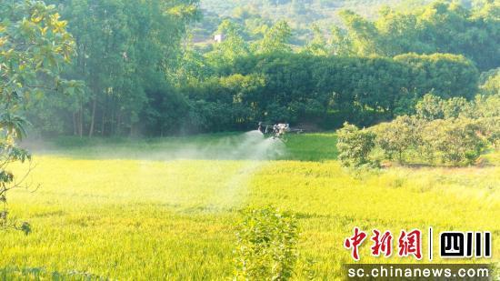 一大早,瀘州市峻宇科技有限公司飛手易顯六操控著手中的遙控器,伴隨著“嗡嗡”聲,無人機從田埂邊起飛,穩(wěn)穩(wěn)懸停在稻田上方,按照預設(shè)線路進行精準噴藥,完成識別弱苗、缺水及病蟲害區(qū)域,進行差異化田間管理。