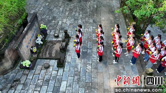 在宋哲元墓園,來(lái)自綿陽(yáng)市富樂(lè)實(shí)驗(yàn)中學(xué)的同學(xué)們整齊列隊(duì),手持鮮花,神情莊重。他們面向?qū)④娔贡C立默哀,隨后緩步上前,將手中的鮮花輕輕放在墓碑前,表達(dá)對(duì)將軍的深切緬懷與崇高敬意。