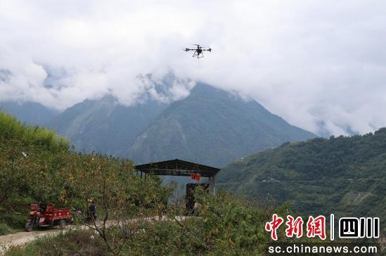 中新網(wǎng)四川新聞9月22日電 (趙瓊)金秋九月,汶川縣2萬多畝紅脆李正迎來集中采收期,田間地頭處處洋溢著豐收的喜悅。在海拔1600米的綿虒鎮(zhèn)涂禹山村果園里,一架滿載鮮果的農(nóng)業(yè)無人機騰空而起,沿著預(yù)設(shè)航線穿越云霧,將剛采摘的紅脆李精準(zhǔn)送至山腳選果棚。這場由四川青霄動能科技有限公司阿壩州汶川縣無人機調(diào)運公司主導(dǎo)的“空中運輸革命”,正以科技之力破解高山運輸難題,讓羌山鮮果以更鮮活、更高效的方式走向全國市場。