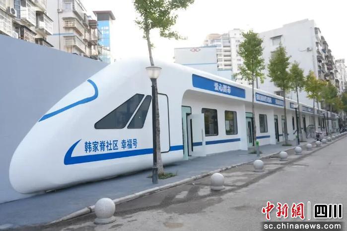 在社區(qū)“幸福里”車站廣場,新改造的藍白色調的“韓家脊社區(qū)幸福號”列車煥然一新,愛心超市、家庭醫(yī)生工作站、愛心食堂等近10個功能區(qū)在“車廂”內(nèi)有序布局,讓居民在家門口就能享受到“一站式”便民服務。