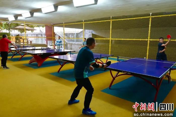 教室旁邊的乒乓球館同樣人氣爆棚,借用富樂大橋底面搭建的場館頂部,四周全圍欄防護,200平方米的空間內(nèi),鋪設了嶄新的塑膠地面,5張球臺可供10人同時競技。場館外的休息長椅和儲物柜更顯貼心。居民們揮拍對打,喝彩聲與球拍撞擊聲交織成社區(qū)熱鬧旋律。