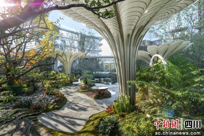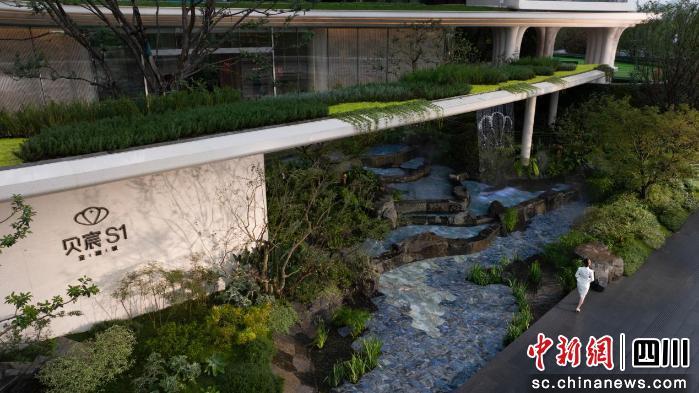 貝宸S1的生態(tài)基底,不僅是“造景”,更是“造血”。首先是眼睛看到的5D生態(tài)綠洲,整個(gè)示范區(qū)約200余種植物,通過五重垂直綠化構(gòu)建了一個(gè)城市“立體森林”。在地下車庫、下沉庭院、花園+架空層、空中花園、第五立面五個(gè)層級,均實(shí)現(xiàn)綠化覆蓋,并在每個(gè)層級都有所創(chuàng)新。108個(gè)生態(tài)艙將科技悄然融入生態(tài)肌理。
