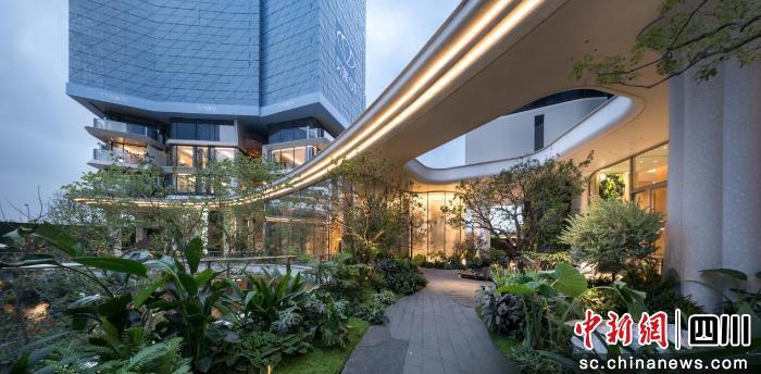 更值得稱道的是對材料的極致考究:項(xiàng)目創(chuàng)新性地在架空層打造中應(yīng)用了UHPC(超高性能混凝土),這種常用于阿布扎比盧浮宮等世界級地標(biāo)的材料,兼具高強(qiáng)度、高耐久性與優(yōu)異的可塑性,也是首次出現(xiàn)在成都的住宅項(xiàng)目中。