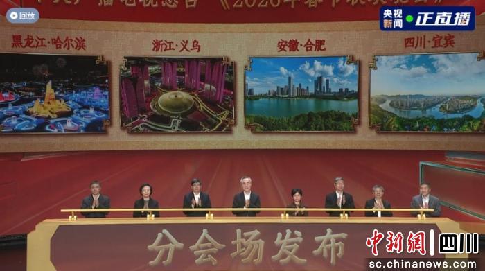 中新網(wǎng)四川新聞12月29日電(吳平華 范軍)28日,中央廣播電視總臺《2026年春節(jié)聯(lián)歡晚會》發(fā)布四地分會場。黑龍江哈爾濱,浙江義烏,安徽合肥,四川宜賓四個風(fēng)格鮮明、各具特色的分會場將攜手北京主會場,與全國各族人民共慶佳節(jié),在除夕夜為全球受眾奉上歡樂吉祥、喜氣洋洋的“文化年夜飯”。