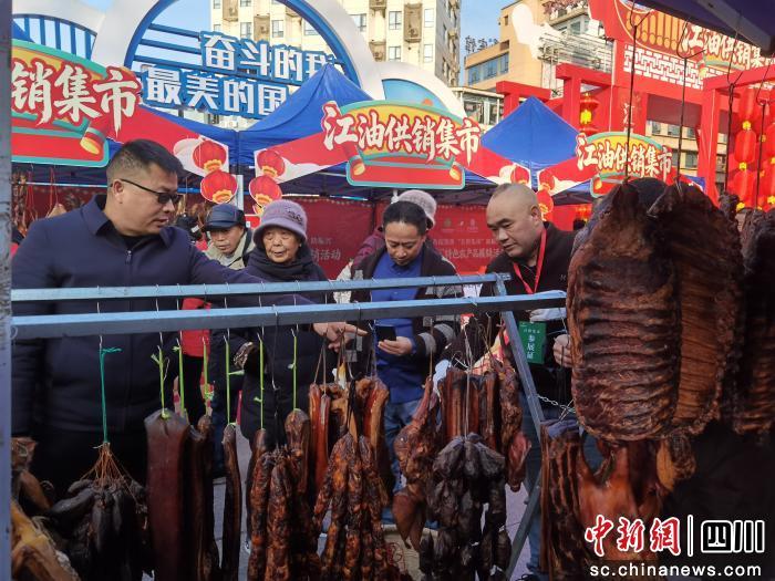 本次活動得到綿陽市供銷合作社聯(lián)合社、江油市人民政府指導,由江油市供銷管理有限公司等多家單位聯(lián)合承辦,綿陽市各區(qū)、縣供銷社系統(tǒng)單位協(xié)辦;顒蝇F(xiàn)場按參展地區(qū)劃分獨立展位,每個展位統(tǒng)一設計,融入當?shù)匚幕嘏c新年裝飾,既整齊規(guī)范又各具特色。參展產(chǎn)品涵蓋地方特色農(nóng)產(chǎn)品、地理標志產(chǎn)品、老字號食品等,重點突出年貨屬性。例如,河口鎮(zhèn)的富硒柚子、西屏鎮(zhèn)的跑山土雞、厚壩鎮(zhèn)的風干鵝、安州區(qū)的佛手柑和獼猴桃、梓潼縣的片粉與酥餅、北川縣的香腸臘肉及藍莓果干等應有盡有,充分展現(xiàn)了綿陽各地的農(nóng)業(yè)特色與產(chǎn)業(yè)優(yōu)勢。