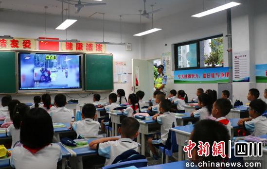 中新網(wǎng)四川新聞9月1日電 (劉剛 許芳芳)9月1日,自貢市沿灘公安交警組織警員走進沿灘區(qū)第二小學,開展了“交通安全第一課”專題宣傳活動。