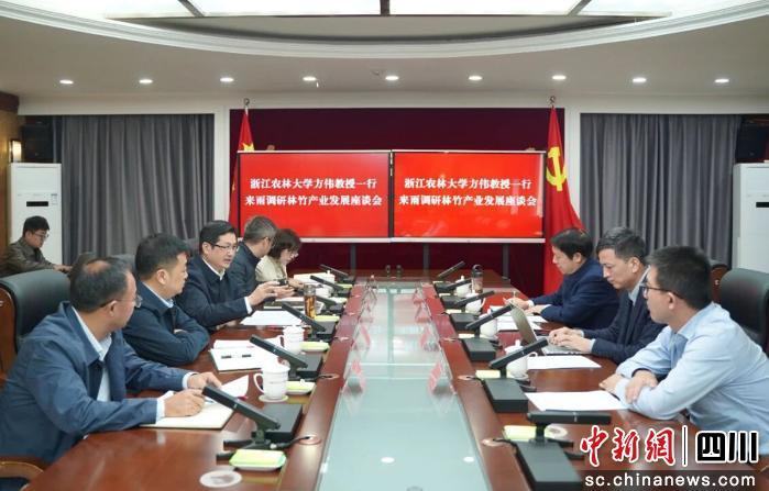 中新網(wǎng)四川新聞10月22日電 (劉剛 楊欣雨 王海)近日,雅安市雨城區(qū)委書(shū)記陳建偉,會(huì)見(jiàn)了浙江農(nóng)林大學(xué)原黨委副書(shū)記、二級(jí)教授方偉,浙江農(nóng)林大學(xué)竹子研究院院長(zhǎng)、教授宋新章和江西筠劍智能裝備有限公司董事長(zhǎng)廖衛(wèi)兵、北京中竹文化科技有限公司總經(jīng)理邵長(zhǎng)專、宜賓尚竹農(nóng)業(yè)科技有限公司董事長(zhǎng)陳加枝等林竹產(chǎn)業(yè)專家和企業(yè)家,大家圍繞雨城林竹產(chǎn)業(yè)科技研發(fā)、精深加工、品牌打造、市場(chǎng)拓展等進(jìn)行了深入交流。