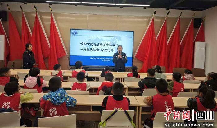 中新網(wǎng)四川新聞11月22日電 (劉剛)近日,雅安市文化市場(chǎng)綜合行政執(zhí)法支隊(duì)組織執(zhí)法人員走進(jìn)雨城區(qū)青江街道青江路社區(qū),以“筑牢文化防線 守護(hù)少年成長(zhǎng)—文化執(zhí)法‘護(hù)苗’在行動(dòng)”為主題開展了普法宣講活動(dòng),為首個(gè)秋假期間新就業(yè)群體子女托管班的孩子們,送上了一堂干貨滿滿、生動(dòng)有趣的法治“微課堂”。