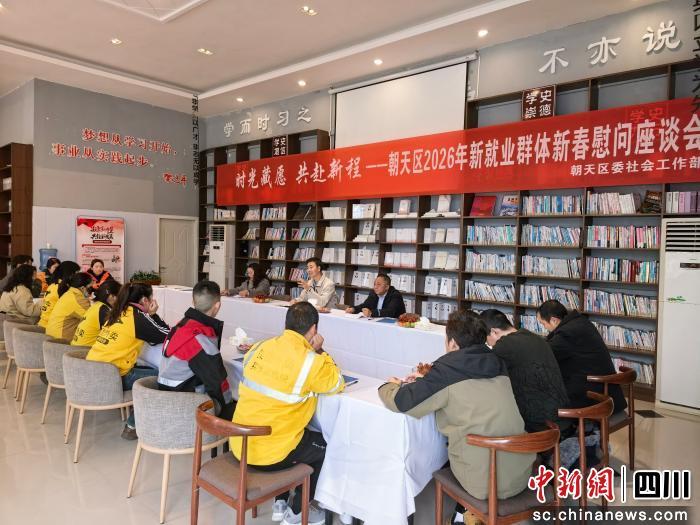 中新網(wǎng)四川新聞2月4日電。ㄈ浇瘊槨詰c)2月3日,廣元市朝天區(qū)暖新驛站內(nèi)年味濃郁、暖意融融。由廣元市朝天區(qū)委社會工作部主辦的“時光藏愿?共赴新程”新春慰問活動在此溫情啟幕,15名快遞員、外賣騎手、貨車司機(jī)、網(wǎng)絡(luò)主播(達(dá)人)等新就業(yè)群體代表齊聚一堂,在辭舊迎新的濃厚氛圍中感受組織的貼心關(guān)懷,定格溫暖瞬間,寄托新年期許。