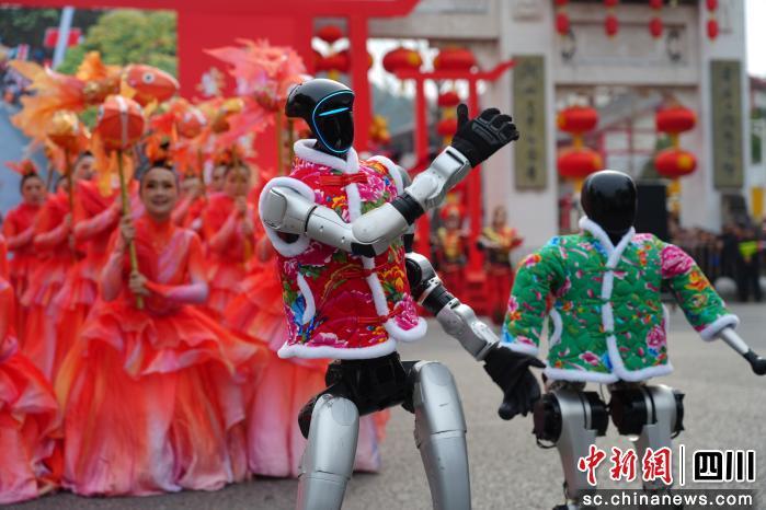 德陽經(jīng)開區(qū)將前沿科技與傳統(tǒng)民俗巧妙融合,巡游隊伍中,多臺智能機(jī)器人身穿大花襖驚艷亮相,它們或與演員共舞,或與觀眾互動,現(xiàn)代元素的加入讓傳統(tǒng)表演煥發(fā)新意,引得孩子們歡呼雀躍;旌陽區(qū)以德孝文化為魂,攜孝泉上九會民俗方陣與創(chuàng)新IP旌陽文旅吉祥物“旌灣灣”和“美塔塔”熱鬧共舞,機(jī)器狗與“籃球小哪吒”們驚喜同臺,科技感十足的機(jī)器狗靈活舞動,一群手持籃球、裝扮成哪吒形象的孩童們活力四射;羅江區(qū)依托調(diào)元文脈,以“五丁開山”戰(zhàn)舞再現(xiàn)三國豪情,氣勢磅礴,年輕演員們揮灑汗水,以剛勁有力的舞姿贏得陣陣喝彩;廣漢市主打古蜀祈福,用產(chǎn)業(yè)元素、廣漢龍獅舞以及市級非遺“漢州面具”交織出安康祥和的節(jié)日圖景;什邡市展示雪茄風(fēng)情,“虎鈕淳于戰(zhàn)鼓”震天,節(jié)奏鏗鏘;綿竹市以年畫之鄉(xiāng)為底色,羌族兒女踏歌送福,色彩斑斕;中江縣聚焦非遺煥彩,演繹英雄故里的時代新姿。
