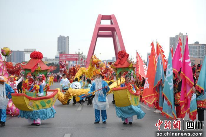 中新網(wǎng)四川新聞3月3日電 3月3日,農(nóng)歷正月十五元宵佳節(jié),德陽市區(qū)長江路化作一條流動的文化長河。由中共德陽市委宣傳部、德陽市文化廣播電視和旅游局主辦的“滿城歡騰慶元宵·一馬當(dāng)先啟新程”2026年元宵節(jié)民俗文化巡游活動在這里精彩上演。由千余名演職人員組成的8支巡游隊伍,從鐘鼓樓廣場浩蕩出發(fā),途經(jīng)長江東路、彩虹橋,最終匯聚于文廟廣場,全程2.5公里。一路歡歌前行,為市民和游客獻(xiàn)上了一場穿越古今、融合傳統(tǒng)與潮流的新春文化盛宴。