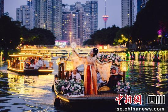 中新網(wǎng)四川新聞9月23日電 中秋國慶雙節(jié)將至,成都夜游錦江以“芙蓉桂香滿錦江·月圓盛世慶華誕”為主題,深度挖掘成都傳統(tǒng)“八月桂市”文化,推出系列沉浸式文化體驗(yàn)活動,打造“以桂為媒、以芙蓉為韻”的雙節(jié)嘉年華。同時,將20艘以上的游船化作沉浸式體驗(yàn)新空間,“李冰”“楊雄”“司馬相如”“卓文君”“劉備”等歷史人物將“穿越”到現(xiàn)代,在游船上與游客近距離互動,為游客呈現(xiàn)一場融合古典詩意與時代歡慶的文旅盛宴。