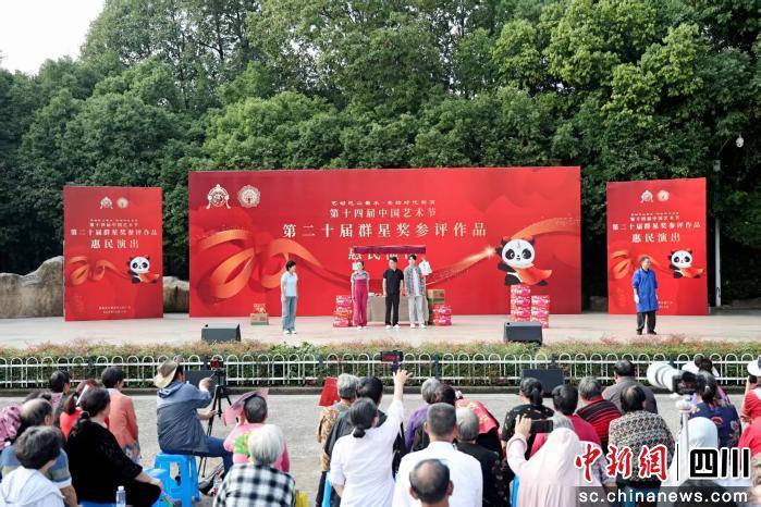 中新網(wǎng)四川新聞10月15日電。ㄌ瀑 肖茹月)10月15日,第十四屆中國(guó)藝術(shù)節(jié)·第二十屆群星獎(jiǎng)戲劇參評(píng)作品惠民演出在四川省遂寧市安居區(qū)、樂山市夾江縣、眉山市永豐村及資陽(yáng)市三賢文化公園四地同步上演。四場(chǎng)演出匯集了來(lái)自全國(guó)各地的群眾文藝作品,通過小品、戲曲、情景劇、舞蹈等多種形式,深入劇場(chǎng)、田間與廣場(chǎng),將高質(zhì)量文化盛宴直接送至百姓身邊,生動(dòng)詮釋了“藝術(shù)的盛會(huì)、人民的節(jié)日”的辦節(jié)宗旨,展現(xiàn)了新時(shí)代群眾文藝創(chuàng)作的蓬勃生機(jī)。