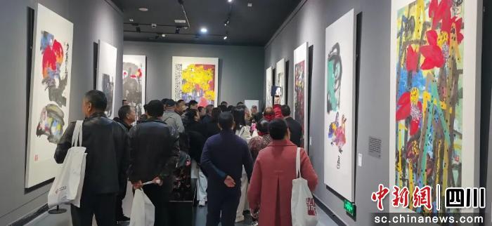 出席當(dāng)天畫展開幕式的藝術(shù)大家和各方嘉賓云集,四川省中國畫學(xué)會副會長、四川當(dāng)代書畫院院長、成都畫院專職畫家蔡寅坤,哈爾濱師范大學(xué)美術(shù)學(xué)院名譽(yù)院長、中國國家畫院研究員高卉民,火箭軍文藝創(chuàng)作室專職創(chuàng)作員、著名軍旅畫家陳芳桂,湖北省中國畫研究院院長、湖北省文史研究館館員孔奇,四川博物院原副院長、四川省中國畫學(xué)會常務(wù)副會長魏學(xué)峰,四川省藝術(shù)攝影協(xié)會副主席王琦,北京《真子藝道》策劃與執(zhí)行人、文旅部青聯(lián)篆刻委員會委員呂子真,中國藝術(shù)研究院導(dǎo)師、人民藝術(shù)創(chuàng)作院副院長宋寶印,著名美術(shù)評論家梁合等200余人出席開幕式。