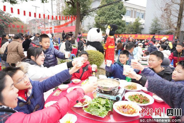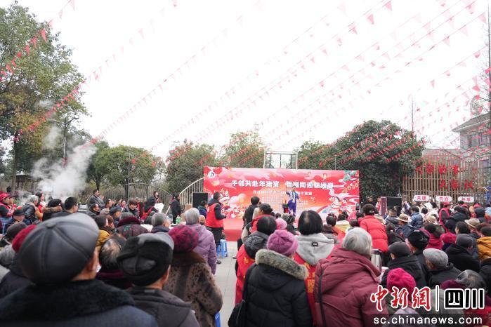 中新網(wǎng)四川新聞1月29日電 28日,成都市郫都區(qū)三道堰鎮(zhèn)青杠樹(shù)村“千鄰共赴年豬宴·百福同臨錦繡春”慈善壩壩宴在花龍門(mén)院落熱鬧舉行。800余名村民、游客、愛(ài)心企業(yè)代表齊聚一堂,在非遺表演、年豬儀式、幸運(yùn)抽獎(jiǎng)的歡聲笑語(yǔ)中,共赴一場(chǎng)充滿民俗煙火、鄰里溫情的新春盛宴。