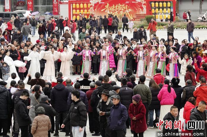 正月初四至初六,白馬藏族鄉(xiāng)各村寨舉行跳曹蓋等民俗活動。傍晚,篝火燃起,藏族群眾與游客手拉手跳起圓圓舞,咂酒飄香,山歌與歡笑聲交織。從梅花林到白馬山寨,從非遺展演到民俗體驗,平武的鄉(xiāng)村年味醇厚綿長,讓八方游客真正過了一次“文化年”。