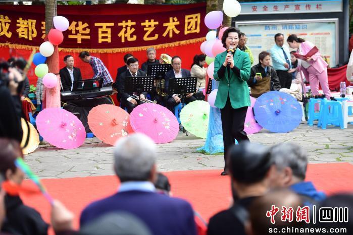 中新網(wǎng)四川新聞3月5日電。ㄐと阍拢3月4日,成都新華公園內(nèi)格外熱鬧,成都新華百花藝術(shù)團(tuán)在此舉辦公益演出,提前為“三八”國際婦女節(jié)暖場。四川人民藝術(shù)劇院院長、表演藝術(shù)家董凡也來到了現(xiàn)場表演節(jié)目,致敬“她”力量。