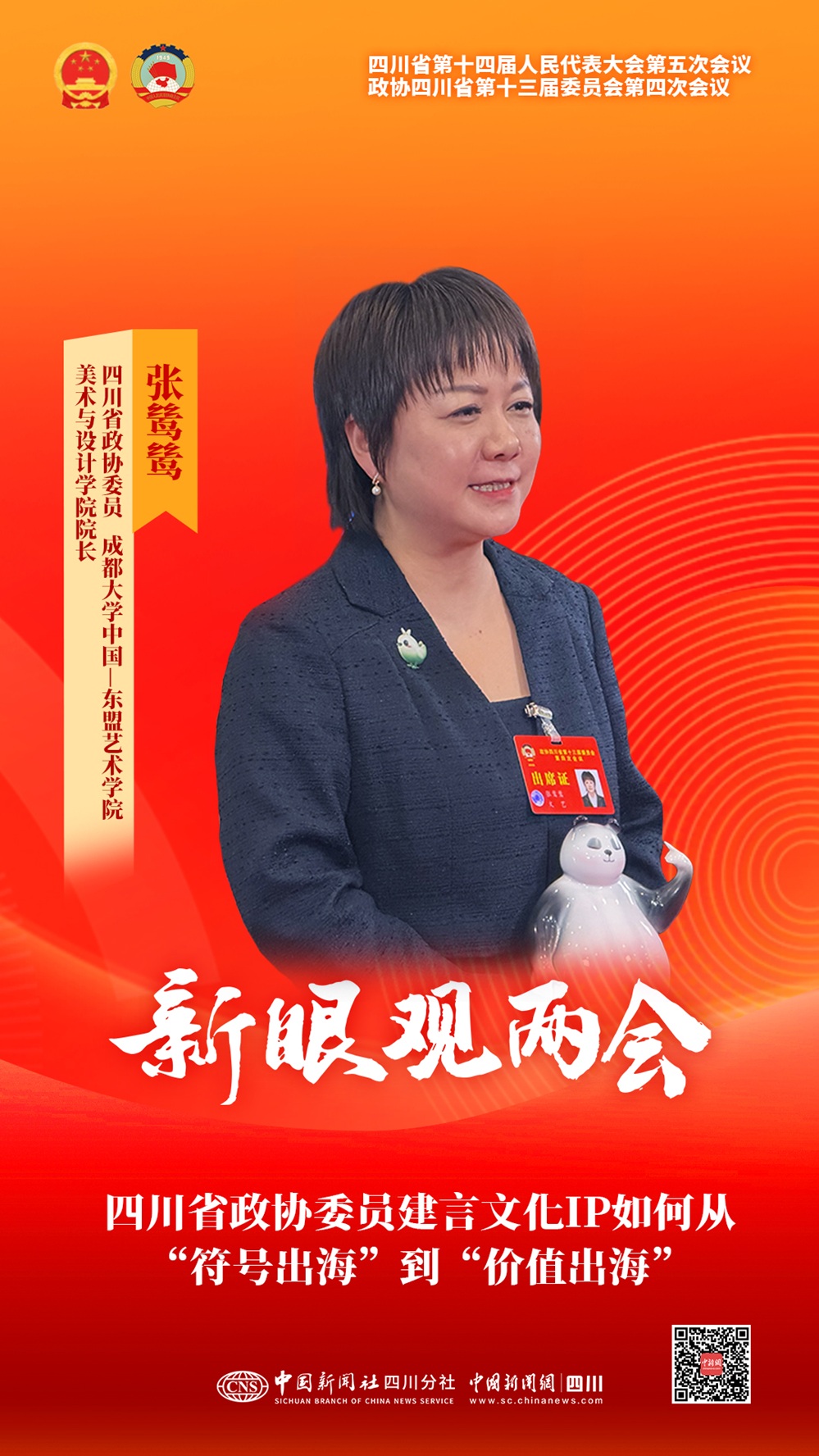 中新網(wǎng)成都2月5日電數(shù)字文創(chuàng)的本質(zhì)是‘以科技講好故事,以故事連接人心’。融合創(chuàng)新之道在于技術(shù)加持與文化活化,四川IP出川出海則需要搭建民心、情感、價值相通的橋梁。5日,四川省政協(xié)委員、成都大學(xué)中國—東盟藝術(shù)學(xué)院美術(shù)與設(shè)計學(xué)院院長張鷥鷥帶著一只特別的大熊貓玩偶,走上了四川省政協(xié)十三屆四次會議的委員通道。