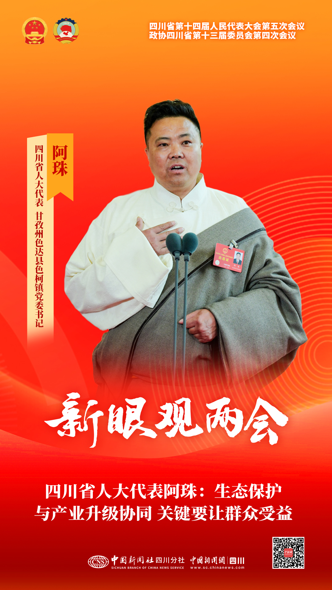 中新網(wǎng)成都2月4日電綠水青山和金山銀山,根本不是二選一的選擇題,而是必須都做好的必答題。4日下午,四川省人大代表、甘孜州色達縣色柯鎮(zhèn)黨委書記阿珠在代表通道上接受采訪時表示。