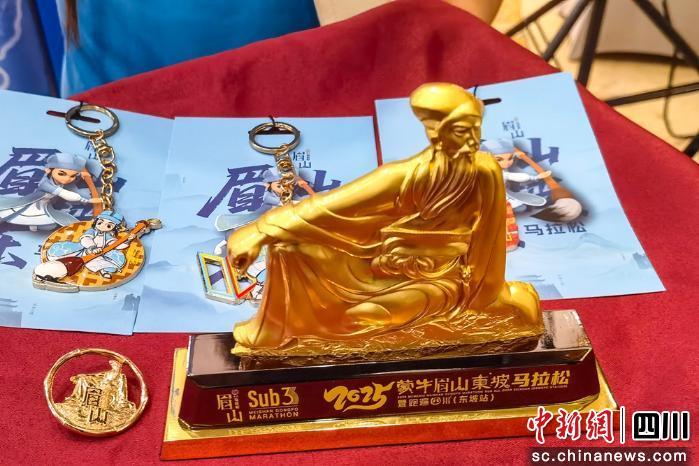 賽事深度融合東坡文化,書卷式五折獎(jiǎng)牌融入宋代窗欞、竹林、三蘇祠等元素,鑲嵌東坡盤陀坐像徽章;馬拉松“破三”(完賽時(shí)間突破3小時(shí))選手專屬主題獎(jiǎng)杯,將競(jìng)技榮耀與文化致敬相結(jié)合,極具收藏價(jià)值。系列東坡文化主題文創(chuàng)產(chǎn)品,也將成為特色伴手禮。