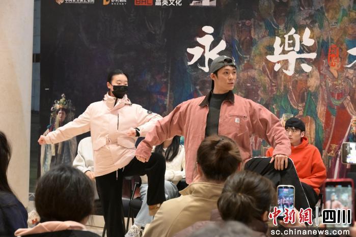 在對(duì)談環(huán)節(jié)中,主創(chuàng)團(tuán)隊(duì)分享了如何以身體語言演繹厚重歷史。編舞闡釋了創(chuàng)作核心:該劇聚焦于永樂宮的建造、搬遷與修復(fù)這一波瀾壯闊的歷史進(jìn)程。舞蹈的編排旨在平衡歷史文物特有的靜穆感(“安逸”的呼吸)與搬遷守護(hù)過程中蘊(yùn)含的巨大情感張力(“拼搏”的力量)。舞者們則以生動(dòng)的比喻,分享了他們?nèi)绾卫斫獠⒒肀诋嬛械纳竦o、無名工匠,用川菜的“回甘”比喻守護(hù)的執(zhí)著,用“巴適”形容動(dòng)作與音樂完美契合的瞬間,讓遙遠(yuǎn)的歷史故事充滿了可感可知的人間溫度。